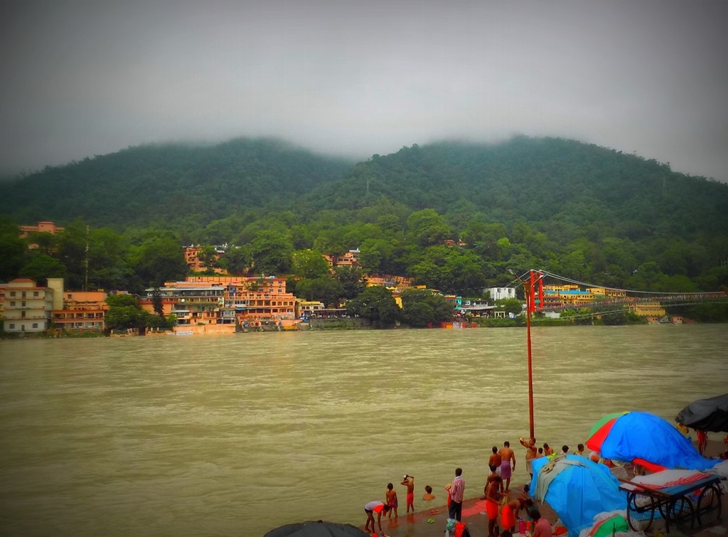 Pierwszy sierpnia okazał się być zbawiennym dniem dla spokojnego życia Rishikeshu (nie wspominając o nas, w końcu można spokojnie chodzić po relatywnie wyludnionych ulicach). Już w Haridwarze tłumy śiwaitów wypełniały sobą (a nawet – przepełniały) całą przestrzeń: autobusy, drogi, miasta, zakamarki, świątynie, aśramy, hostele, dharamsale. W pewnym momencie drogi zostały całkowicie zamknięte dla samochodów, riksz i taksówek. Wszystko po to, by autobusy przepełnione ponad granicę pielgrzymami, dojechały do Rishikeshu i Haridwaru. Mężczyźni różnego przekroju wiekowego, ubrani na pomarańczowo, z obrazkami Śiwy na koszulkach, nabierali z Gangesu wodę i nieśli ją piechotą do domu, by w świątyniach ofiarować ją Śiwie. Raz nawet dojrzałam kobietę, ubraną w zwyczajne (niepomarańczowe) sari, niosącą świętą wodę. Po dotarciu nad brzeg Gangesu, przed nabraniem do pojemników wody z rzeki, należy oczywiście dokonać rytualnej kąpieli w Gandze-ji. Zacna inicjatywa, ale ogromnie utrudniająca życie turysty.