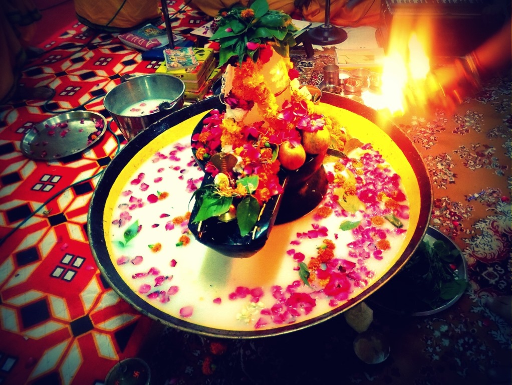 Na tym jednak koniec nie nastąpił, ponieważ zaraz po powrocie do aśramu w satsang hall (sali przeznaczonej na ogólne odczyty dewocyjne i pouczenia dla hindusów przyjeżdżających do aśramu), rozpoczęła dwugodzinna ofiara ku Śiwie polegająca na przyozdabianiu, polewaniu mlekiem i śpiewaniu przez wychowanków aśramu oraz ich opiekunów fragmentów Wed: