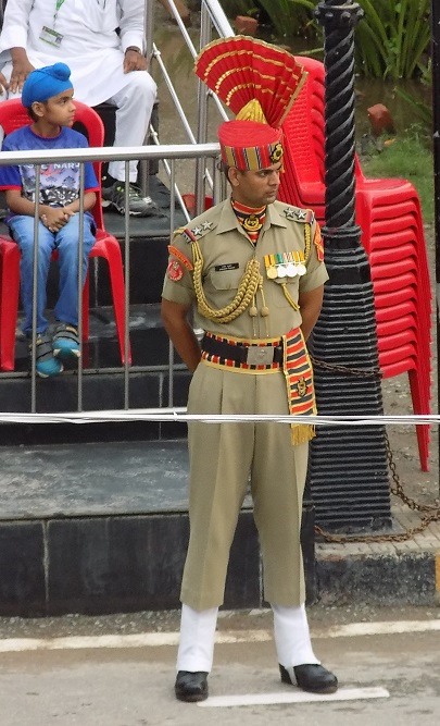 A na zakończenie zdjęcia żołnierzy – indyjskiego i pakistańskiego (w pięknym czarnym mundurze) – z codziennej Ceremonii Zamknięcia Granicy indyjsko-pakistańskiej. Ceremonia ta jest nie tyle sztywną uroczystością, ile zabawą tak dla widowni, jak i samych żołnierzy. Warto zobaczyć… i warto potańczyć w rytm piosenek z Bollywoodu, które niezwykle głośno dobywają się z głośników na około godzinę przed uroczystością: