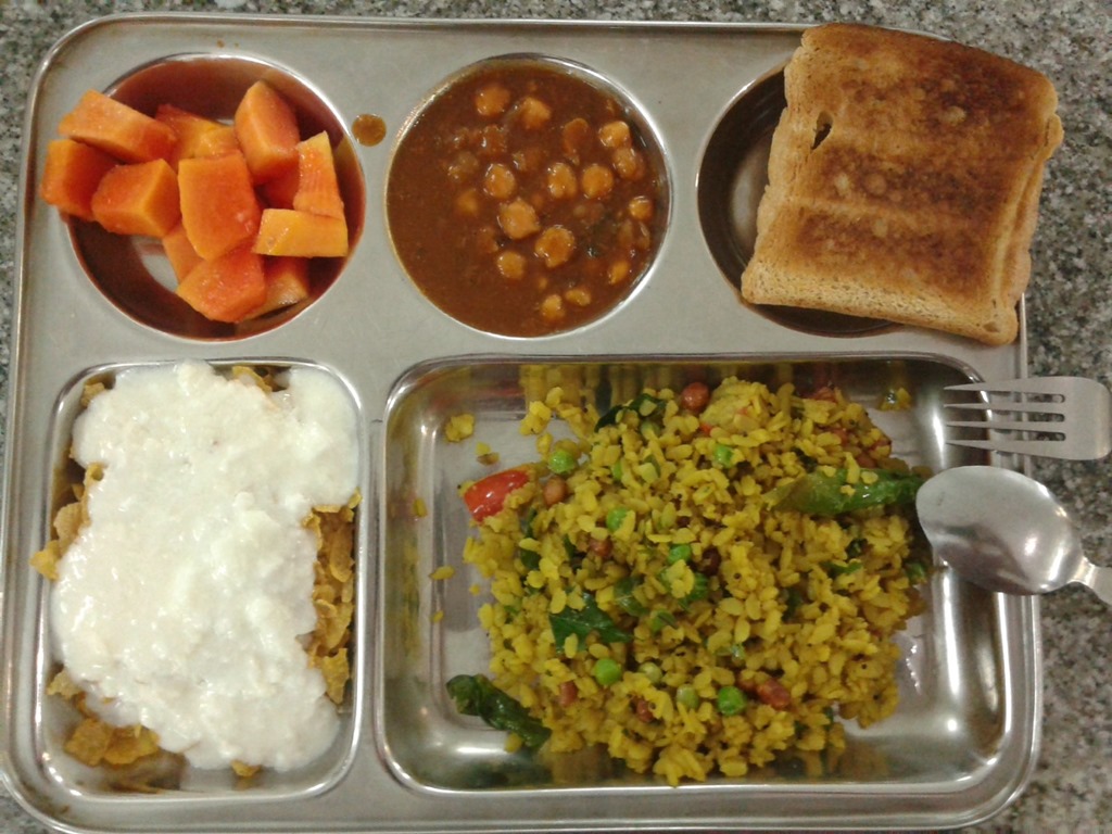 A potem człowiek z radością biegnie do aśramowej stołówki, by jeść śniadanie i pić czaj (10 rupii, czyli jakieś 60 gr), co u mnie oznaczało – zagryzać czaj gulab jamunem (10 rupii), kocham! Niczego nie kocham po jodze (i nie po jodze) tak mocno jak jedzenie – gotowanie i konsumowanie! No dobra, kocham jeszcze filozofię (w tym muzykę) i sanskryt (hiszpański i francuski też).